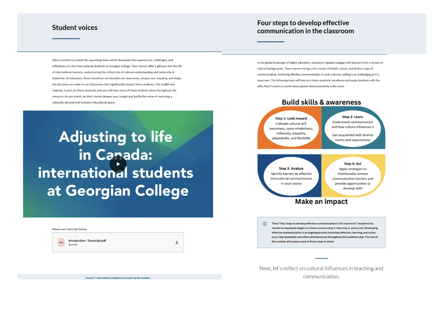 I led the design and development of this self-paced micro-certificate, created to support faculty in building culturally responsive and inclusive teaching practices. Developed as part of Georgian College’s professional development offerings, the toolkit was hosted by the Centre for Teaching, Learning, and Academic Excellence and aligned with institutional equity goals.